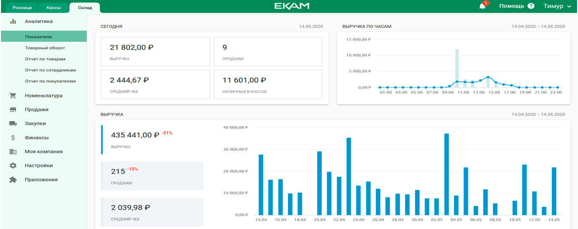 ЕКАМ — это универсальная программа для товарного учета. ПО совместимо с онлайн-кассой по ФЗ-54. Софт работает в облачном режиме. Доступ к личному кабинету поддерживается с любого устройства