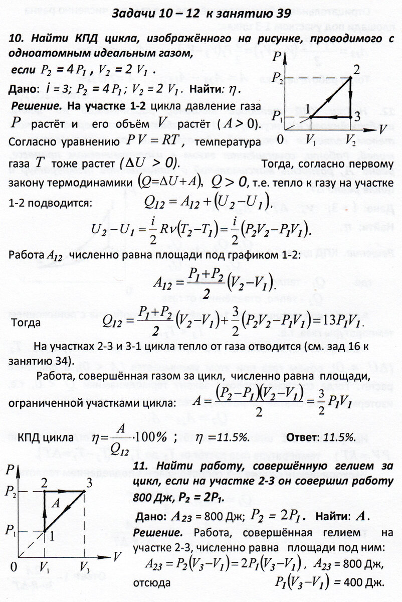 Задачи 10 - 12 к занятию 39 (круговые процессы)