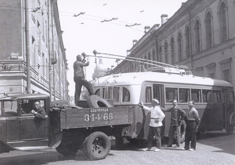 В октябре 1936 года в Ленинграде появились троллейбусы. Первый маршрут троллейбуса прошел от Красной площади (площади Александра Невского) до площади Труда, еще три маршрута было открыто в течение трех лет: троллейбусы соединили с центром Финляндский и Балтийский вокзалы. Популярность троллейбуса, бесшумного и маневренного вида транспорта, быстро пошла в гору и автобусы он нагнал быстро: с четырех до 150 троллейбусов вырос ленинградский транспортный парк всего за пять лет. Помешала дальнейшему развитию транспорта война: 20 декабря 1941 года троллейбусные сети были обесточены, и троллейбусы остались стоять там, где их застало отключение напряжения. Блокада Ленинграда была снята 27 января 1944 года и в этот же день был издан приказ деконсервировать троллейбусный парк и к маю восстановить работу троллейбусов. Оставшиеся в городе 122 троллейбуса требовали ремонта, а троллейбусная сеть – восстановления, при этом автопарку требовались водители и ремонтные бригады. Несмотря н
