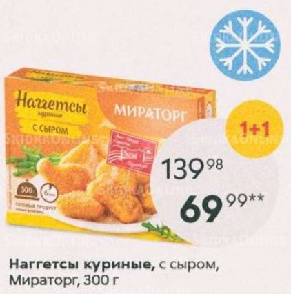 С 26 мая в Пятёрочке кроме обычных скидок в магазинах действует акция "два по цене одного" на ряд товаров. Часть из них рассмотрим в статье. Наггетсы куриные, с сыром, Мираторг, 300 г 139.98 69.99 руб Блинчики с Творогом, с Пылу с Жару, 360 г 89.98 44.99 руб Сосиски Докторские с сыром, Пит-Продукт, 336 г Сардельки Говяжьи, Великолукский МК, 600 г 189.98 94.99 руб Сок Агуша, в ассортименте, 200 мл 37.98 18.99 руб Пельмени Фирменные, Сибирская Коллекция, 700 г 419.98 209.99 руб Гофры Аладушкин, с суфле, клубника со сливками; черника, 122 г 43.98 21.99 руб Средство для чистки Domestos, в ассортименте, 750 мл 159.80 79.90 руб Читайте также: Скидки в Пятёрочке до 52% : с 26 мая
