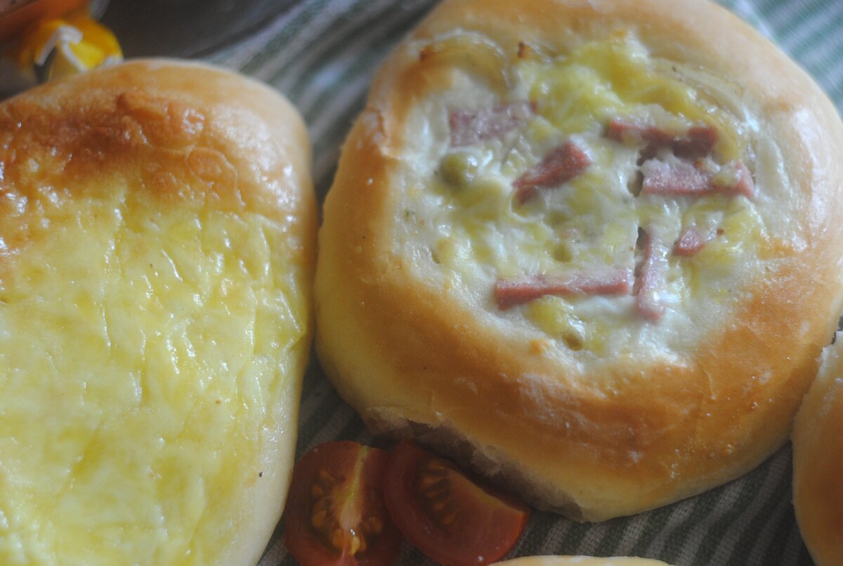 Много плюшек нужно на нашу семью. 4 растущих организма и муж с хорошим аппетитом- вот откуда я черпаю кулинарное вдохновение. Вообще мне очень повезло, что я люблю готовить. Потому что без любви к кулинарным экспериментам мне бы пришлось очень непросто. Ну или наоборот- мне было бы очень просто) Вот на днях вдохновение намекнуло мне, что давненько на наше столе не красовались аппетитные лепешки и ватрушки. Пообещала семье приготовить вкусности и удалилась на кухню. Главное правило вкусной домашней выпечки- мало теста и много начинки. Тесто для лепешек и ватрушек я готовила одинаковое- на молоке. 1 стакан теплого молока смешиваем с 5 гр.сухих дрожжей, сахаром, солью, 1 яйцом, 2 ст.л. растительного масла и мука- чтобы получилось мягкое и не липнущее к рукам тесто. Даю ему дважды подойти в мультиварке. Начинки готовила две. Для лепешек натерла сыр,добавила яйцо, пару ложек сметаны- все перемешала до однородного состояния. Для ватрушек мне понадобился сыр(грамм 150), колбаса (150 г