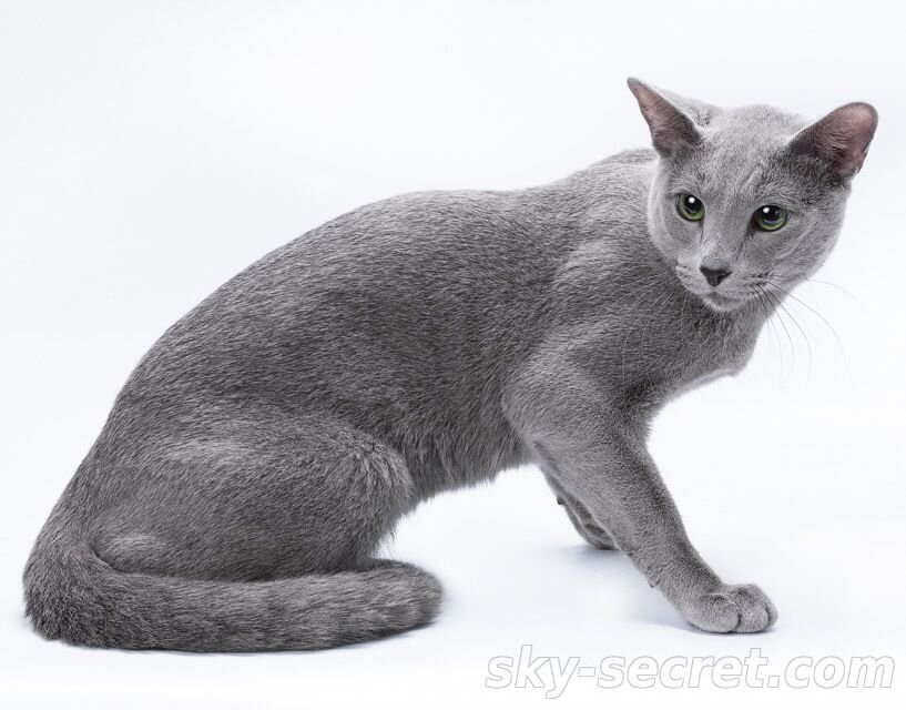 Почему голубые? Вроде серы и в нетрадиционных наклонностях замечены не были. А вот так называются! Ранее русскую голубую называли архангельской. Считается, что именно оттуда этих кошек с чудным мехом моряки завезли в Британию. Котейка славилась своим умением ловить крыс. Говорят, эти кошки произвели впечатление на королеву Викторию! Но после Второй Мировой порода оказалась на гране исчезновения! Чтобы спасти прекрасных кыс, их стали скрещивать с сиамцами и британцами. ВНЕШНОСТЬ Знаком породы считается… ухо! Да, довольно крупное ухо с тонкой, почти прозрачной кожей. Ну и густой серый мех с голубым оттенком. Такой эффект получается благодаря серебристым кончикам шерстинок. Сама кошка стройная, изящная и длинноногая. Мордочка остренькая, миндалевидные зеленые глаза. У котят бывают серые полоски, но со временем они проходят, остаются только едва различимые полосочки у кончика хвоста. ХАРАКТЕР Русская голубая довольно умная кошка. Она тихая и не кричит на всю квартиру. Но и сами русск