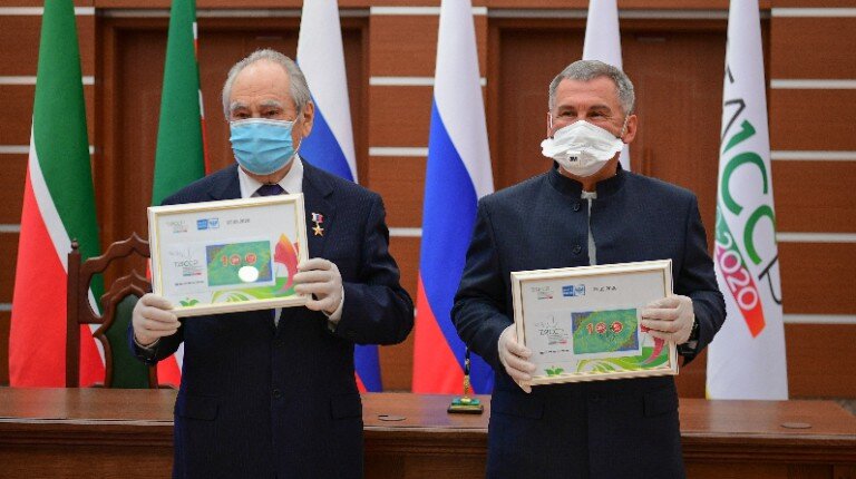 Минниханов и Шаймиев приняли участие в гашении памятной марки