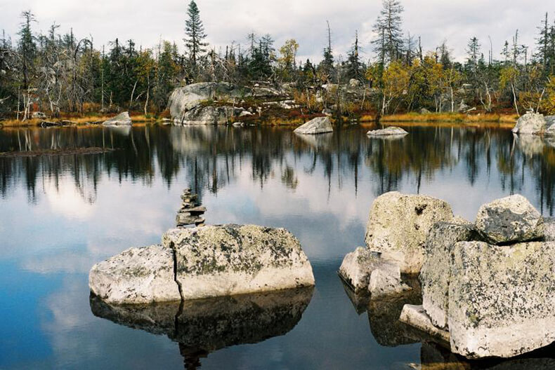 Загадочное место — так говорят про эту гору на западе Карелии. Воттоваара впечатляет не высотой — всего-то 417 метров, — а необычными объектами. Например, тут то и дело встречаются сейды — валуны, поставленные на несколько маленьких камней. Огромный сейд стоит и на высшей точке горы. Под скупым северным солнцем растут жуткие крючковатые деревья, из-за которых того и гляди выглянет Леший. Самые странные конструкции Воттоваары — каменный «амфитеатр» с колодцем идеальной формы и ступени, которые называют «лестницей в небо».