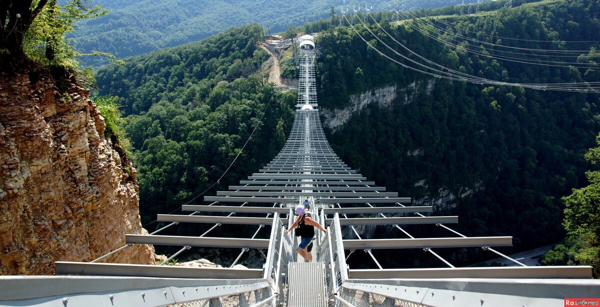 Скайбридж — один из самых длинных подвесных пешеходных мостов в мире протяженностью 439 метров. Он находиться на высоте 207 метров над землей. На мосту есть площадка для прыжков, каторая находиться над рекой Мзымга в Ахштырском ущелье. Первое же место в рейтинге занял мост Peak Walk, соединяющий два пика в Альпах.