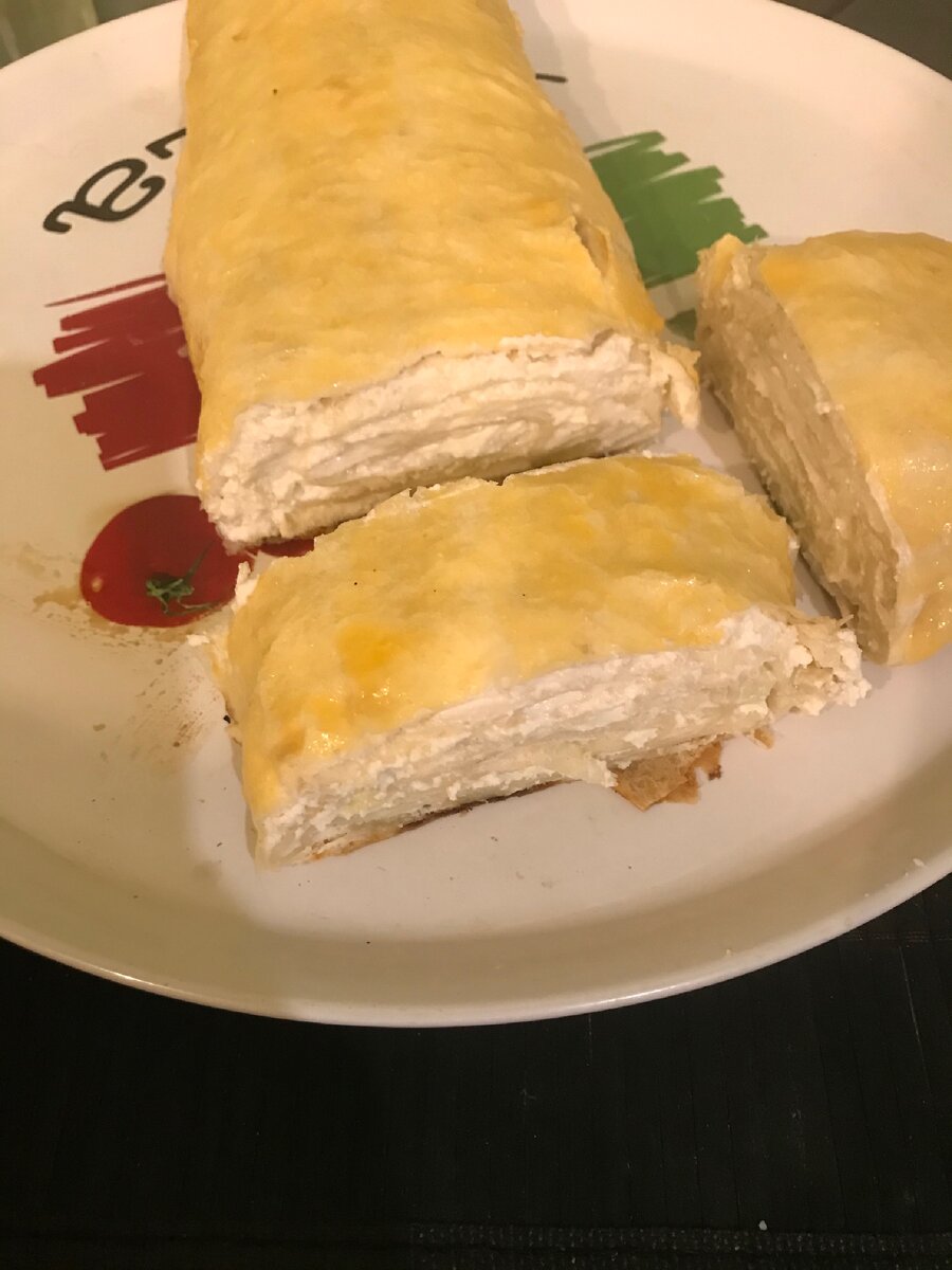 Творожный рулет Для приготовления рулета необходимо смешать в блендере 500 гр. творога , 1 яйцо, 2-3 столовые ложки тростникового сахара. Затем мелко нарезать 2 спелых банана и смешать с полученной творожной смесью. Смазываем смесью лаваш и сворачиваем в виде рулета. Полученный рулет выкладываем в форму или на противень, поверхность рулета смазываем взбитым яйцом. Выпекаем 20 мин. И рулет готов. Ингредиенты: Творог- 500 гр. Яйцо-2 шт. Сахар-2-3 столовые ложки Банан-2 шт Лаваш-1 шт