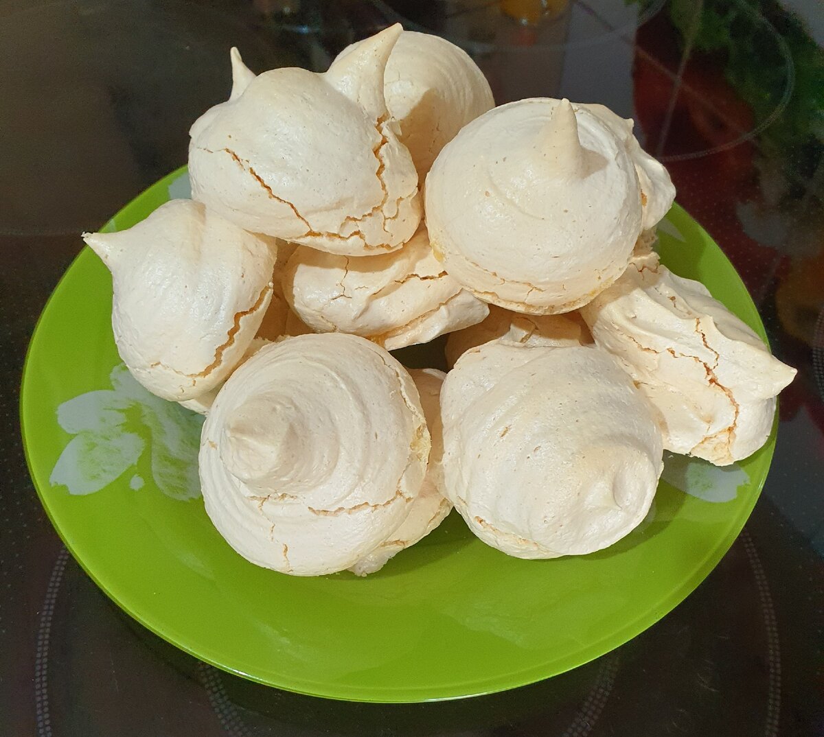 Безе( baiser ) в переводе с французского означает поцелуй. Это пирожное обладает высоким содержанием белка, а если приготовить его с заменителем сахара будет низкокалорийным лакомством для любителей вкусно поесть без вреда для фигуры. Ингредиенты: - белки яичные 4 штуки - сахар 240 грамм - сок лимона 1 чайная ложка ( можно обойтись без нее если не смущают " загорелые" безе) Перекладываем в кастрюлю или любую другую емкость с высокими стенками все ингредиенты. Взбиваем массу миксером на большой скорости 6-7 минут. Как только смесь загустеет и при поднимании венчиков будут образовываться устойчивые пики, безе можно выкладывать на противень застеленный пекарской бумагой или фольгой. Так же подойдет силиконовый коврик для выпекания. Перекладываем белковую массу в кулинарный мешок. Можно выкладывать пирожные столовой ложкой, получаются не менее интересные формы. Безе выпекают при низкой температуре (80-108°С) в течении 3-4 часов. Если безе используются в качестве верхнего слоя д