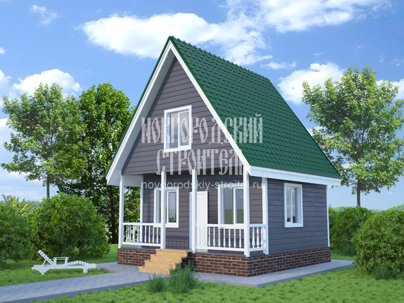Для проекта выбрана двускатная крыша с сильным уклоном скатов. Это позволяет без проблем эксплуатировать постройку в районах с сильными осадками (снег и дождь не задерживаются на крыше). Однако эта же особенность уменьшает полезный объем мансарды - потолок на большей часть помещения имеет скос, а расположенные непосредственно возле стен участки отгорожены вспомогательными перегородками.