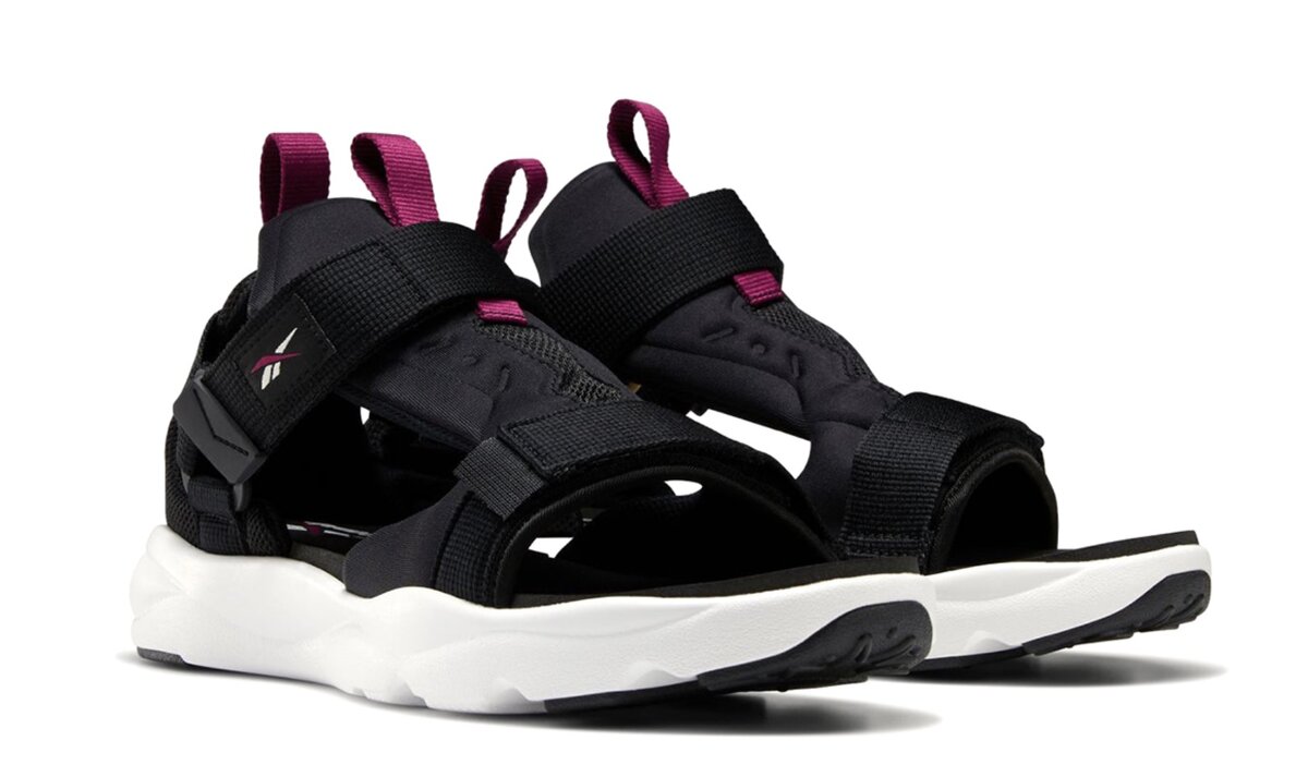 Reebok показала новую модель Furylite, получившую минималистичный дизайн и удобный, мягкий нейлоновый язычок от модели InstaPump Fury. Такими кроссовками я тоже владел, надувной механизм вместо шнурков у всех вызывал восторг, но в сандалии такую технологию не добавили — для фиксации стопы используются обычные липучки.