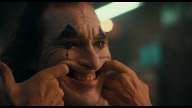 Развязка личностного конфликта Артура происходит после раскрытия правды о его прошлом. Протагонист возвращается домой опустошенный и озлобленный, последнее открытие для Артура становится одновременно открытием для зрителя - отношения с соседкой были лишь плодом воображения. В пустой квартире, почти в полной темноте, Артур Флек лишается остатков рассудка и становится Джокером.