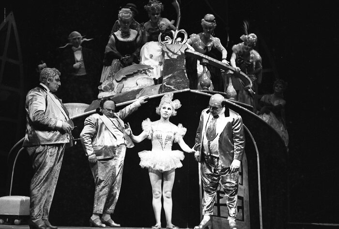 Легендарные спектакли В 1930 г. В. Немирович-Данченко уже обращался к сказке Ю. Олеши «Три толстяка» – эта постановка должна была сменить «Синюю птицу» – но по ряду причин не задержалась в репертуаре. В 1961 г. спектакль поставили в новой сценической версии по новой инсценировке. «Три толстяка» В. Богомолова и М. Горюнова стали одним из самых популярных спектаклей в истории МХАТ и были сыграны 761 раз. Автор: Ю. Олеша, М. Горюнов Постановка: В. Богомолов, М. Горюнов Художник: Л. Батурин В ролях: В. Невинный, Н. Гуляева, А. Покровский, Г. Епифанцев, И. Васильев, В. Трошин, Ю. Ларионов и др. О театре в период 1944-1987 гг здесь Еще легендарные спектакли этого периода: "Дульсинея Тобосская" (1971), Сталевары (1972), "Соло для часов с боем" (1973) и другие. О театре в период 1918-1943 гг здесь Легендарные спектакли этого периода: "Дни Турбиных" (1926), "Горячее сердце" (1926), "Бронепоезд 14-69" (1927), "Анна Каренина" (1937), "Три сестры" (1940), "Русские люди" (1943). О театре в 1898