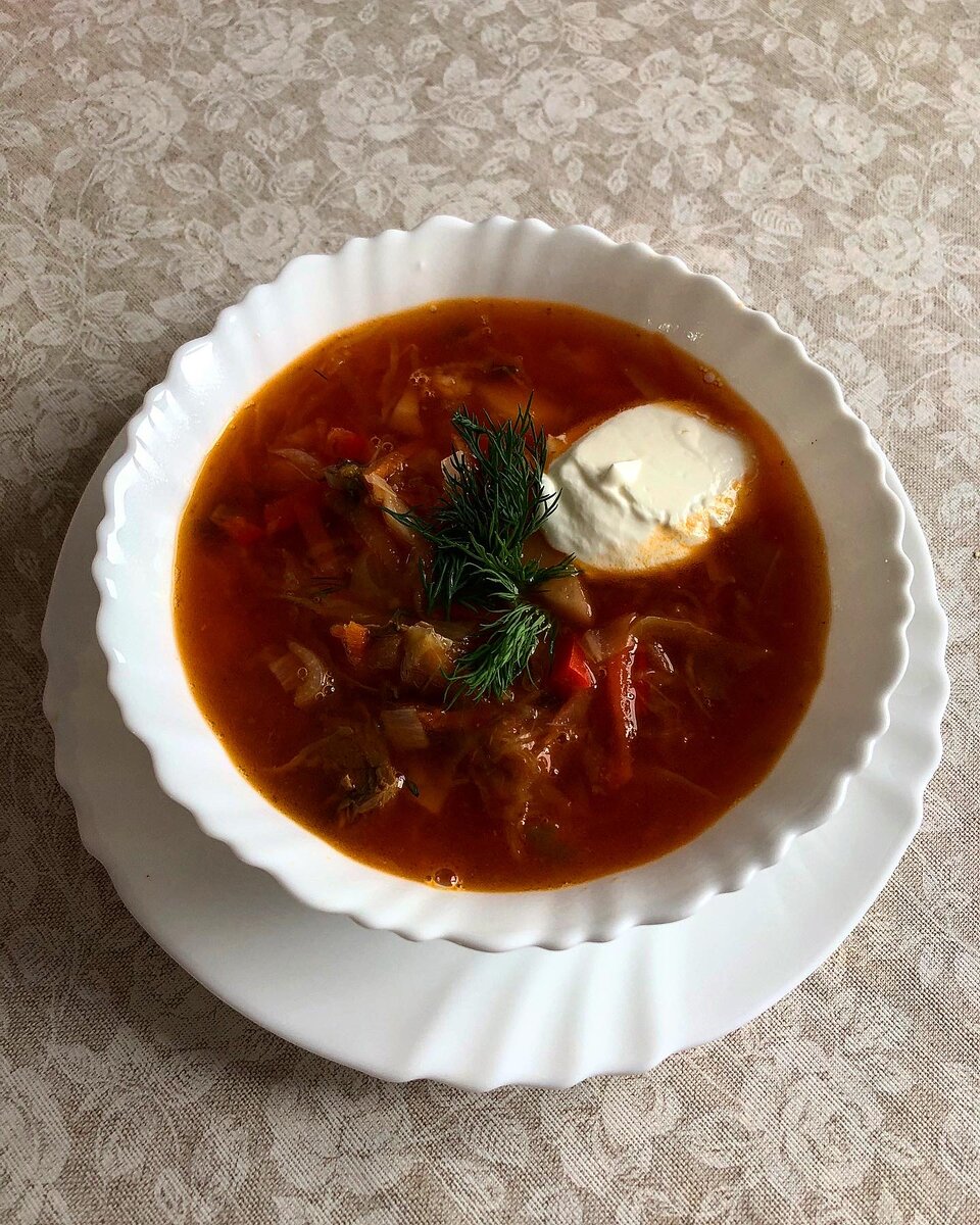 Борщ Нам понадобится: ▪️говядина- 300гр ▪️капуста-на глаз ▪️морковь-1шт ▪️свекла-1 среднего размера ▪️лук репчатый-1шт ▪️перец болгарский- 1/2 от целого ▪️лавровый лист, перец горошек ▪️3-4 зубчика чеснока ▪️картофель 2-3 среднего размера томатная паста 1ст л зелень по вкусу Приготовление: Говядину промываем, заливаем водой, добавляем лаврушку, перец горошек, и варим бульон, не забудьте посолить. Готовую говядину вынимаем, разбираем. Моем, шинкуем капусту. Чистим и нарезаем картофель, кому как нравится:брусочки/кубики. Заправка: Все овощи промыть. На сковороду наливаем растительное масло, режем лук, отправляем на сковороду, пассируем до золотистого цвета. Трём морковь, свеклу, оправляем к Луку, Перец нарезаем соломкой, зубчики чеснока раздавить ножом, измельчить , отправляем на сковороду. Тушим минут 10 смесь, в конце добавляем томатную пасту или кетчуп, все перемешать. Снять с огня. Говядину возвращаем в бульон, туда же отправляется капуста, картофель, заправка... Доводим до кипе