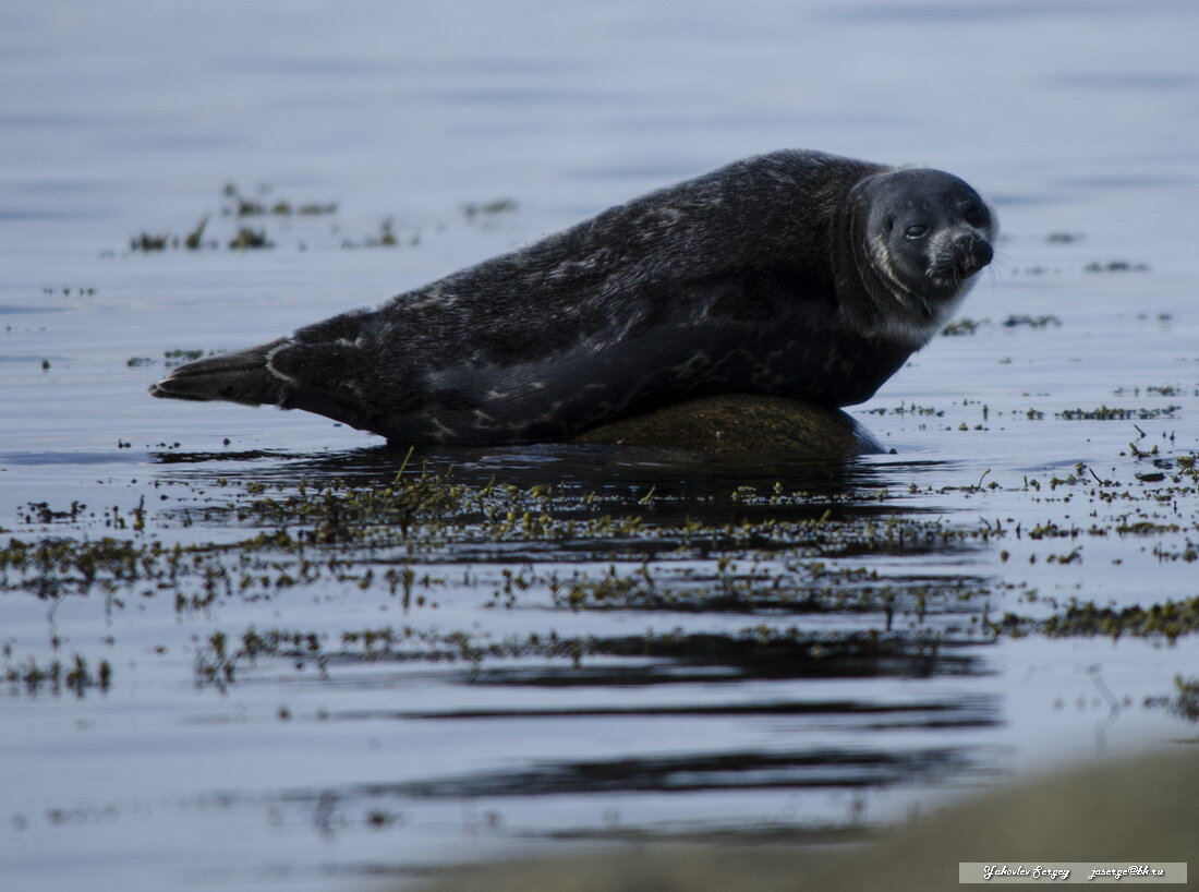 Как только начинает припекать солнышко, греться вылезают настоящие поморы - лахтаки, нерпы, гренландские тюлени. Вот такие лежебоки попались мне на берегу Белого моря в Приморском районе Архангельской области. Ребята весьма пугливые и в безветренную погоду к ним надо буквально "подползать"