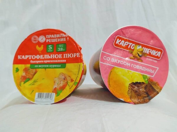 В любом продуктовом магазине найдется отдел, где продают дешевую еду, которую легко приготовить, просто залив кипятком. Это, прежде всего, лапша, например, «Роллтон» или «Доширак», а также картофельное пюре. Увидев на полке два стаканчика такой продукции, с виду абсолютно одинаковых, но сильно отличающихся в цене, задумываешься, а в чем подвох? Почему одно такое блюдо обойдется в 25 рублей, а другое – в 50 «деревянных»? Попробуем разобраться в этом вопросе. Рассмотрим два бренда: «Картошечка», выпускаемая с 1999 года, с ценником в 50 рублей и «Правильное решение!», стоимостью в 25 рублей. Количество порошка Первое, что бросается в глаза – это масса упаковки с продуктом. В более дорогом варианте, как и полагается, изготовитель «насыпал» 41 грамм порошка, тогда как в дешевом, удалось обнаружить всего 38 грамм. Кстати, не такое уж и бюджетное блюдо получается. Если 38 грамм стоит 25 рублей, то за килограмм придется заплатить уже 658 рублей! Хватит на несколько ведер отборного картофеля