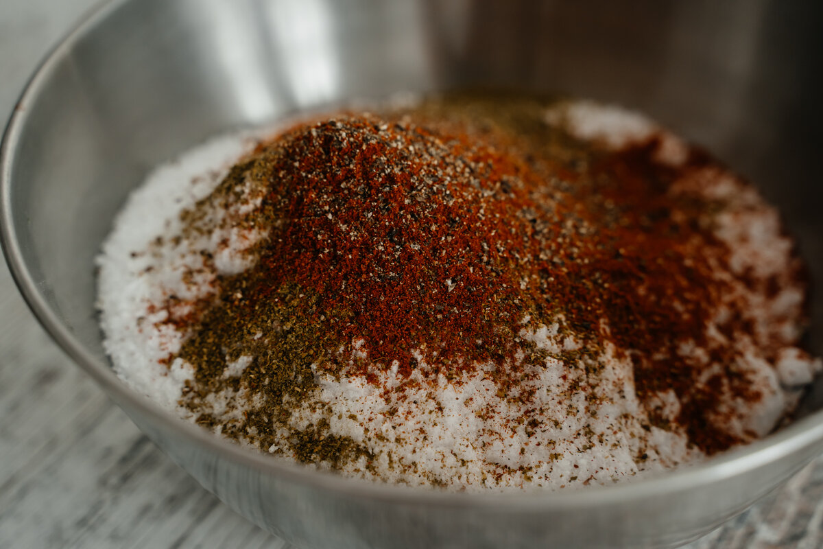 Специи - смесь перцев, хмели-сунели (вы можете добавить свои любимые специи). Общее время приготовления: 6-7 дней. 1) С вырезки срезаем лишний жир (т.к. он плохо вялится и в последствии будет невкусным). 2) В отдельной миске смешиваем 1 кг соли и специи. 3) Берем тару в которой будем вялит мясо. На дно насыпаем слой соли со специями, далее кладем мясо и засыпаем его остатками соли со специями. Смесь соли и специй должна полностью закрывать мясо. 4) Убираем в х
