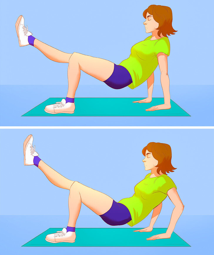 До лета осталось не так много времени, но успеть похудеть к июню все еще реально. Причем заниматься можно даже не выходя из дома. Достаточно иметь удобную одежду и обувь, коврик для фитнеса и много-много мотивации. 1. Обратные отжимания на одной ноге Это упражнение помогает проработать одновременно трицепс и ягодичные мышцы. 2. Отведение руки за спину в положении лежа Это упражнение отлично прорабатывает спину. Рекомендуем сделать минимум по 15 повторений на каждую сторону. 3. Сгибание туловища на локтях Это еще одно отличное упражнение для спины. Бонусом в нем задействованы мышцы пресса. 4. Скручивания Это упражнение проработает мышцы вашего пресса и поможет избавиться от «ушек» на бедрах. 5. Динамическая планка Такая планка задеёствует одновременно мышцы пресса, спины, таза и рук. Для начала нужно выдержать хотя бы 45 секунд, а потом время выполнения этого упражнения можно увеличивать. 6. Приседания «плие» Это упражнение помогает проработать внутреннюю часть бедер. Выполнять