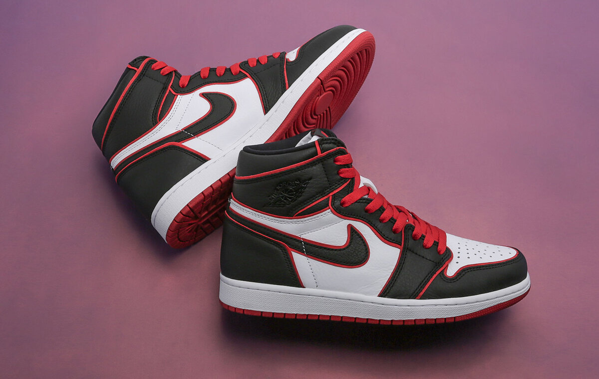 Nike Cortez, Air Max 90,Adidas Stan Smith. Air Jordan 1 были вдохновлены дизайном кроссовок 1985 года. Верх выполнен из кожи и синтетического материала.Подошва выполнена с резины и твёрдой резиновой подмётки для усиленного сцепления.