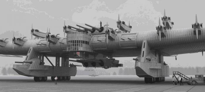 Конечно же, то что вы видите на картинке - это графическая модель. Но возможно именно так представляли летающую крепость в те годы. Именно так хотели чтобы воплотились амбиции и мощь Советского Союза.