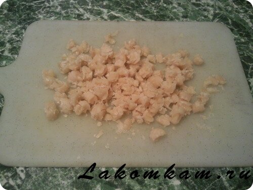 Десерт «Сливы в карамельном соусе». Приготовление. Конфеты разрезаем на кусочки (или раздавливаем).