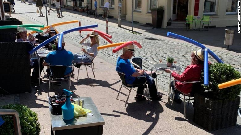 Кафе в Германии отпраздновало свое грандиозное открытие для клиентов после снятия ограничительных мер, раздавая нудлс для бассейна, чтобы сохранить социальную дистанцию. В минувшую субботу владельцам кафе Cafe Rothe в Шверине - городе на родине канцлера Германии Ангелы Меркель в Мекленбурге - Западной Померании - было разрешено вновь открыть свои двери для посетителей после того, как были сняты ограничения из-за коронавируса. В то время как люди наслаждались компанией и погодой, девизом кафе было: "соблюдайте социальную дистанцию." Вместо того чтобы использовать разметку пола и защитные экраны, чтобы держать людей врозь, владельцы кафе раздавали соломенные шляпы с двумя разноцветными плавательными нудлс, прикрепленными к верху. ПОДПИСЫВАЙСЯ НА НАШ КАНАЛ, ЕЩЕ БОЛЬШЕ ИНТЕРЕСНЫХ ФАКТОВ КАЖДЫЙ ДЕНЬ! ЧИТАЙТЕ ТАКЖЕ Ингредиенты долгой жизни. Что увеличит шансы дожить до 100 лет? ЧИТАЙТЕ ТАКЖЕ Японская формула удовлетворенности жизнью