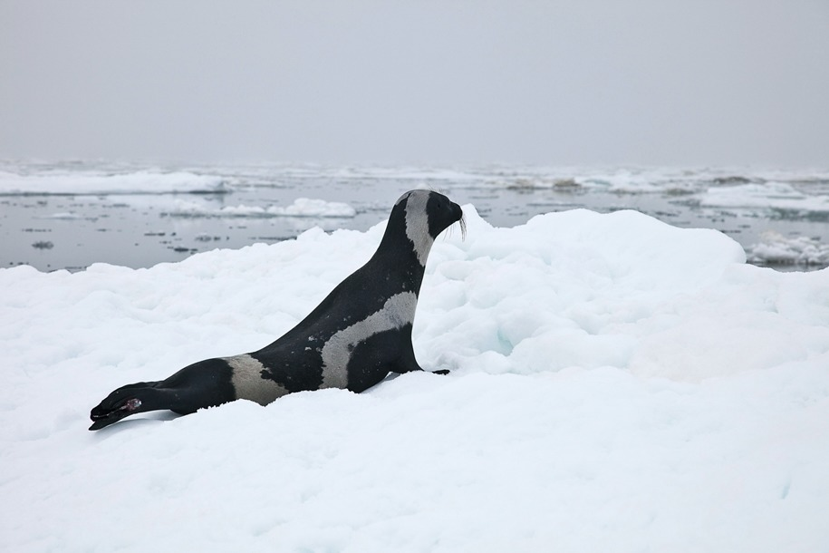 Многие из нас конечно знают, как выглядят тюлени. Но, я думаю, мало кто знает, что они бывают полосатыми. Полосатых тюленей еще называют крылатками. Это довольно редкий вид тюленей. Называют их так потому, что их тело имеет своеобразный окрас. На тёмном, практически чёрном, фоне выделяются контрастные белые кольца. У самцов кольца выделяются сильнее. А у самок общий фон светлее, и кольца порой сливаются с ним. Такие кольца располагаются вокруг шеи подобно ошейнику и вокруг всех его ласт – они опоясывают и задние и передние ласты по отдельности. Всего, получается, на теле четыре кольца. Ширина полос от 10 до 15 см. У новорождённых крылаток цвет меха белый. Благодаря чему они сливаются с окружающим снегом, и их очень сложно найти. После первой линьки молодые тюлени становятся серыми, и постепенно у них начинают проявляться характерные полоски. По своим размерам взрослые тюлени составляют в длину 150-190 см, а масса их тела составляет около 70-90 кг. Крылатки очень хорошо прыгают из во