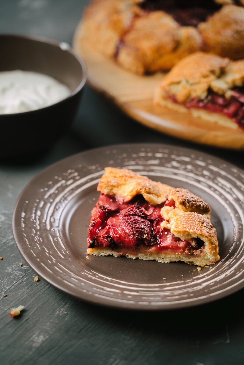 Сезон клубники начался! У нас, по крайней мере. Так что кушаем мы ее регулярно и уже появилось желание не просто жевать, а с какой-нибудь изюминкой. Вот и родилась идея выпечки с ней. Нельзя сказать что я фанат выпечки, но в последнее время все чаще с ней экспериментирую. Теперь есть два постоянных желающих кушать что угодно сладкое. Что хорошо в своей выпечке, можно регулировать сладость по-вкусу, потому что у покупной она чаще всего зашкаливает. Этот рецепт как раз такой, здесь можно регулировать сладость на каждом этапе. Особенно он хорош для начала сезона клубники, когда она уже красивая, но еще не супер сладкая. А главное, галета не требует какой-то супер аккуратности в приготовлении, потому что в итоге все равно должна выглядеть грубовато. Вообщем супер идея, для таких не-профи выпечки как я. Что понадобится на тесто: 250г муки (чуть меньше 2 чашек) 120г сливочного масла (2/3 маленькой пачки) 50г сахара (3-4 столовых ложки) 1/2 ч.л. соли 5-7 ст.л. холодной воды (40-80 мл) Что по