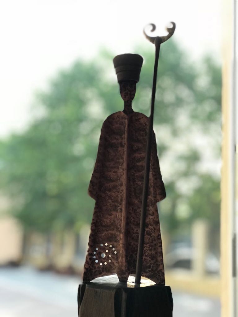 Скифская жрица. Чеканка, медь. Резьба по дереву, орех, липа.