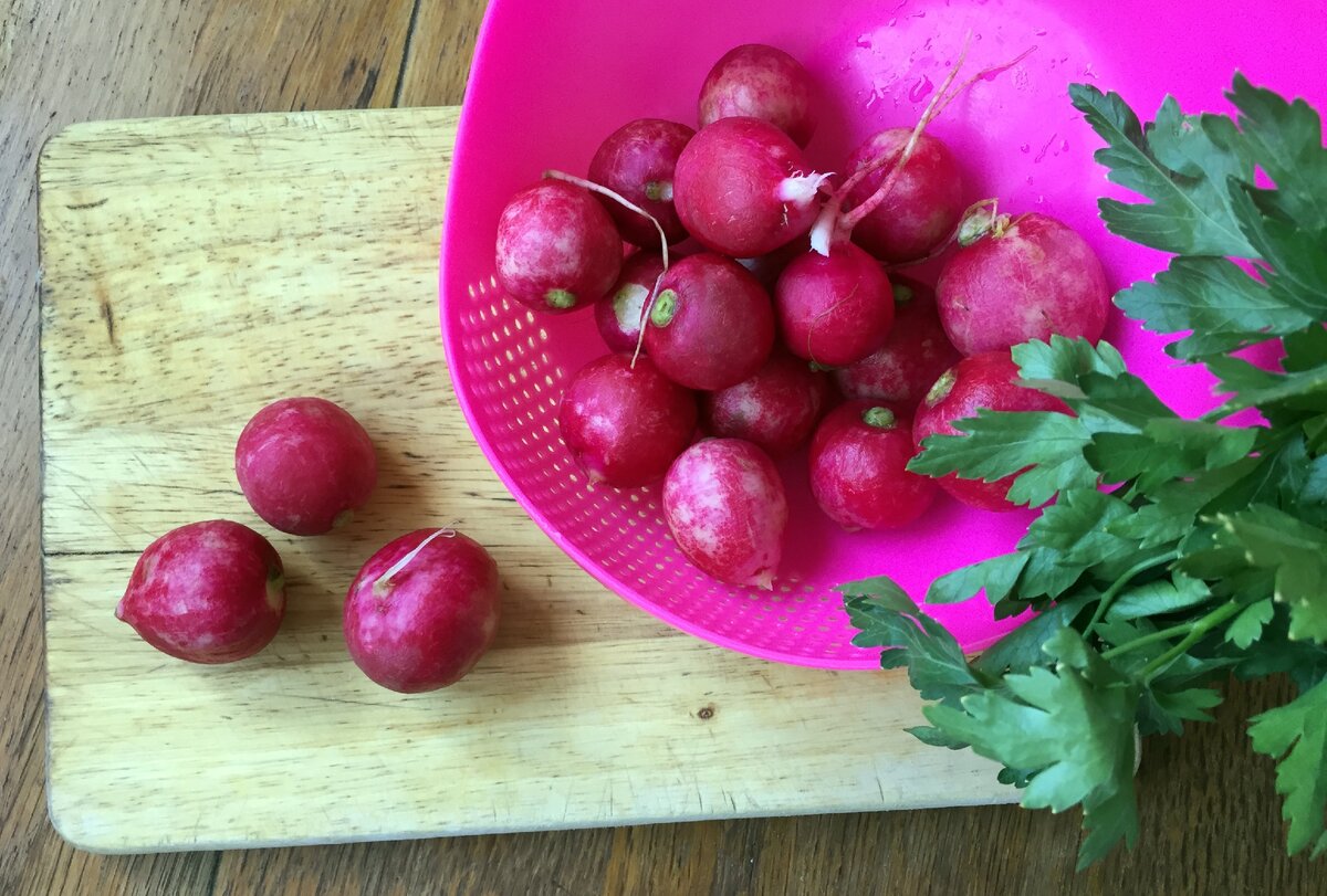 Вот прям срочно в номер! Увидела где-то в интернете эту идею и решила попробовать просто из любопытства, не рассчитывая на что-то особенно хорошее в результате. Но в результате получилось именно нечто особенное в самом лучшем смысле этого слова! Все предельно просто. Редиску тщательно моем щеткой, обрезаем хвосты и попы, где может оставаться хоть сколько-нибудь земли, и режем немелко. Крупные - на четвертинки, а редиски помельче - пополам. И прямо смело жарим на сковородке, как картошку. Уверена, что масло можно использовать любое, и с каждым будет по-своему хорошо. Я жарила на топленом сливочном, и это было ну просто очень. Помешиваем периодически и с удивлением наблюдаем, что редиска, оказывается, умеет подрумяниваться даже лучше, во всяком случае, точно быстрее, чем картошка. И вообще она жарится гораздо быстрей картошки. В этот момент солим ее. И бухаем туда хорошую горсть мелко порезанной петрушки. Можно обойтись и без нее! Но я, когда вижу такой розовый, просто не могу не поддер