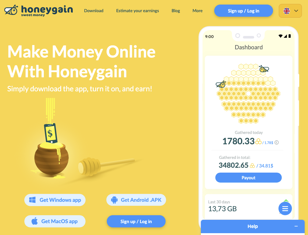 Сидя дома, я переодически мониторю англоязычные сайты для пассивного заработка. Обычно это мошенники, которые просят вас пополнить счет, чтобы сделать вывод или чтобы увеличить доход. Но есть и интересные проекты, которые позволяют заработать небольшую сумму за месяц. Например проект Honeygain. Проект специализируется на интернет трафике. Вы делитесь своим интернет-соединением и получаете пассивный доход - без усилий. Сеть Honeygain используется исследователями из компаний электронной коммерции, рекламы и веб-аналитики. Эти компании извлекают информацию из интернета для проведения исследований рынка, предотвращения мошенничества с рекламой, защиты бренда, анализа цен, агрегирования тарифов на поездки и мониторинга. Ваши данные не собираются, им это не нужно. Вам необходимо поставить небольшую программку на свой компьютер или смартфон и запустить ее в фоне. Она не заставляет ваш компьютер пыхтеть изо всех сил, она не требует много оперативной памяти и не жрет интернет. Примерно раз в ч