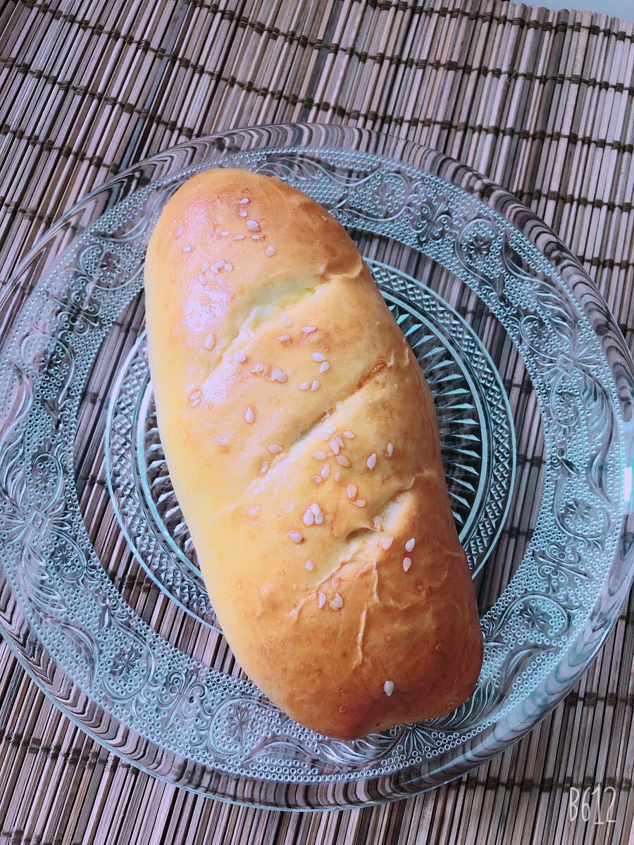 Рецепт: Тесто: Дрожжи ~1 пачка Сахар~ 2 ч.л Молоко ~ 300 мл Соль~ 1 ч.л Масло сливочное ~ 50 гр.(2 ст.л) 2 желтка Мука ~500 гр. Сначала делаем опару, 1 пачку дрожжей , 1 чайную ложку сахара и 2-3 столовых ложки молока ( тёплого) перемешиваем и ждём минут 10. Далее соединяем желтки и 1 ч.л сахара , соль и оставшиеся молоко перемешиваем . Готовую опару вливаем в молочную смесь и постепенно добавляем муку . Дальше месим тесто. Тесто должно получиться эластичным . Накрываем кухонным полотенцем и ставим в тёплое место минут на 40. После того как тесто подошло , начинам раскатывать тесто примерно толщиной 2 мм . И потом тарелкой вырезаем кружочки . Выкладываем начинку ( у меня сыр ) и формирую в виде маленького батона обмазываем желтком , посыпаем кунжутом и в духовку на 180 *С на минут 20 . Булочка готова. Приятного аппетита!☘️