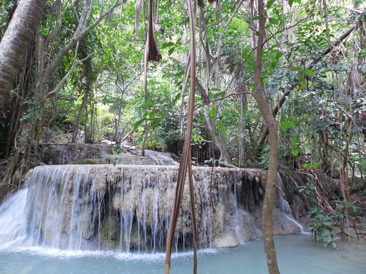 Этот красивый водопад находиться в Канчанабури, одной из провинций Таиланда. Это необыкновенно красивое место - национальный парк Эраван. В переводе это что-то типа «три слона». Хотя водопадов там семь! И все они разные. Готова спорить, что гид в первую очередь расскажет вам о том самом "женском" водопаде. Первые два водопада - ничего особенного, лучше пройти дальше. Именно про четвёртый водопад гиды до начала экскурсии рассказывают, что формы каменного уступа, с которого низвергается не слишком сильный, но ощутимый водный поток. Формы напоминают очень аппетитную часть женского тела! Вода кое-где на этих водопадах кажется голубой с переливами от бирюзы до почти изумрудного оттенка. Вот на фоне этой красоты дамы обожают делать фото. Мужчин притягивает фигуристый уступ на четвёртом водопаде! На него и для фото, и просто чтобы скатиться в водоём, нужно не только забраться. Забраться не очень сложно. «Ухнуть» в воду с высоты – тут нужно морально подготовиться. А если вам нужно нормальн