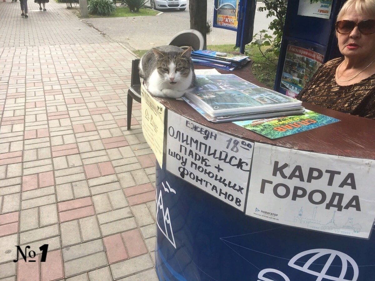 Наш добрый друг прислал нам фото из солнечного Адлера☀Там коты устали сидеть дома и вышли на работу, вот один из работников - кот-экскурсовод (фото №1)🐾 Расскажем вам ещё о котах, которые трудятся несмотря на то, что у них лапки🐈 🐾Сэр Филимон — старший мяучный сотрудник Выборгского замка (фото №2) Филимон пришел в выборгский музей-заповедник в 2015 году и решил, что будет там жить. Однако кот не сидит сложа лапки — он ловит мышей, собирает пожертвования, фотографируется с посетителями и следит за порядком в замке. Недавно Филимон получил настоящую трудовую книжку, и теперь он официально старший мяучный сотрудник музея. 🐾Радеменес — медбрат в приюте для животных (фото №3) Радеменес попал в польский приют для животных в возрасте 2 месяцев. У котенка было жуткое воспаление легких, и владельцы решили усыпить его, чтобы прервать мучения. Однако местный ветеринар вылечила малыша, и в благодарность ей Радеменес стал работать медбратом. Сегодня кот помогает тем, кто попал в беду: он сопров