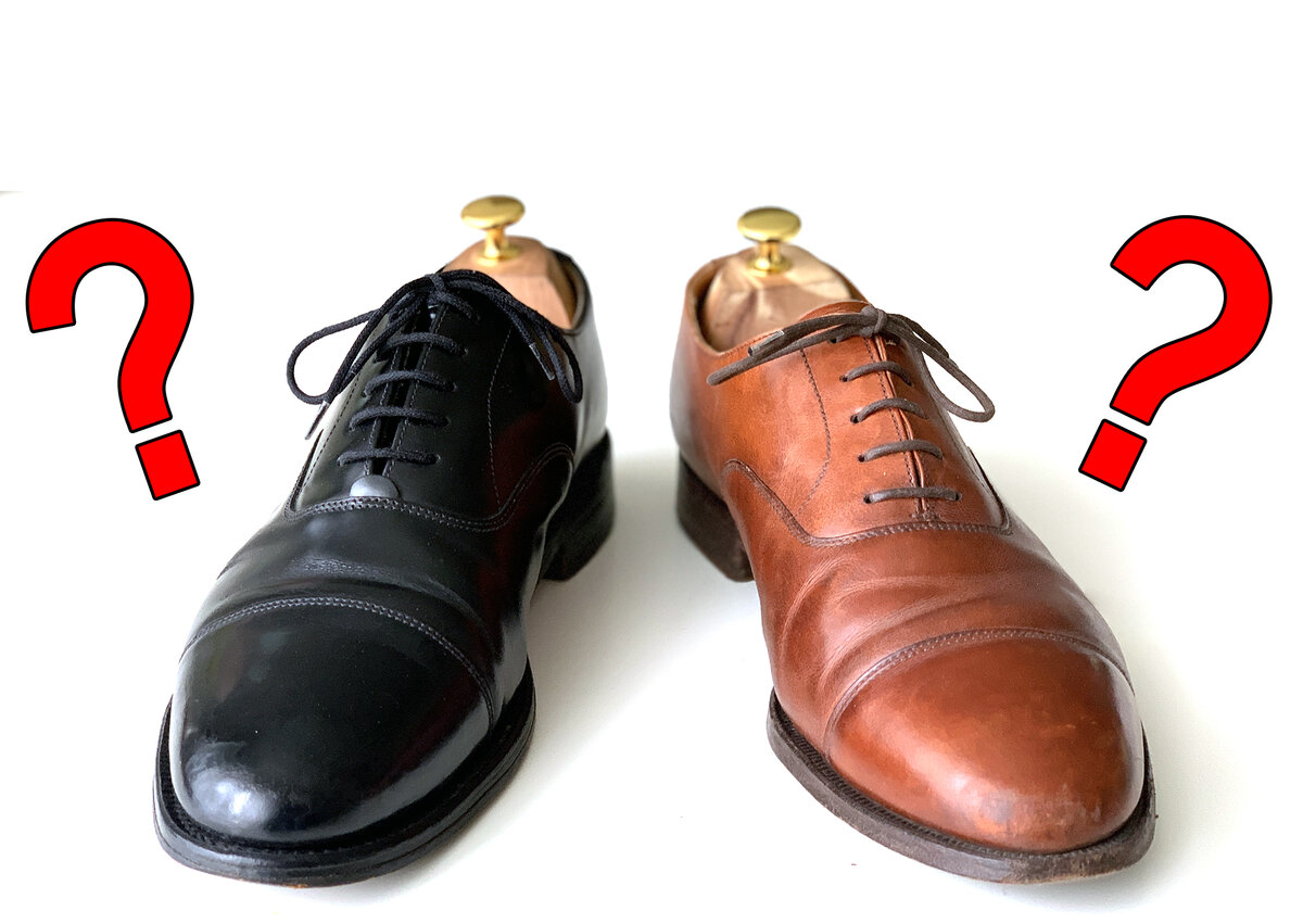 Бытует мнение, что коричневую обувь легче сочетать с гардеробом. И здесь я тоже не согласен! Черную обувь плохо носить с коричневыми костюмами (брюками). Коричневую обувь невозможно сочетать с черными. Но в жизни мы очень редко носим как коричневые, так и черные костюмы. При прочих равных черные туфли окажутся уместнее коричневых.