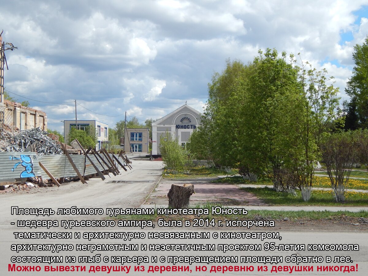 Эту деурбанизацию центра Гурьевска – столицы Гурьевского района, можно было бы понять если бы Гурьевск был мегаполисом с избытком урбанистической среды, но это маленький и без того лесной городок, который даже в центре не похож на полноценный город. В полноценных городах, чем ближе к центру города, тем больше он похож на город, а Гурьевск, 20-летними стараниями начальницы стройотдела, наоборот, чем ближе к центру, тем больше похож на лесной посёлок.