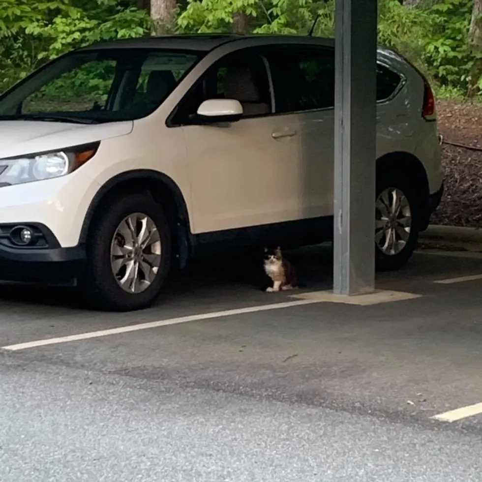 В конце прошлого месяца девушка заметила голодного бездомного кота возле жилого дома в поисках пищи. Она обратилась к Стефани из приюта для животных и спросила, могут ли они помочь. Стефани сразу ответила и прибыла на место с гуманной ловушкой. План состоял в том, чтобы безопасно поймать кошку и дать ей необходимую помощь. Тем не менее, умная кошка, казалось, знала, как избежать попадания в ловушку. «Она определенно следила за мной. В какой-то момент я обернулась, и она стояла рядом с моей машиной. До этого, когда я была в машине, она стояла на холме позади моей машины», - поделилась Стефани. Удивительная находка Кошка не принимала помощи и, казалось, что-то не могла оставить. Через два дня Стефани пошла по окрестности до самого места за кустами. Когда она поставила ловушку на новом месте, она услышала звук котят. Стефани заглянула в кусты и была удивлена тем, что она обнаружила. «Мы узнали, почему она не принимает нашей помощи. У нее были котята, спрятанные в углу между кварт