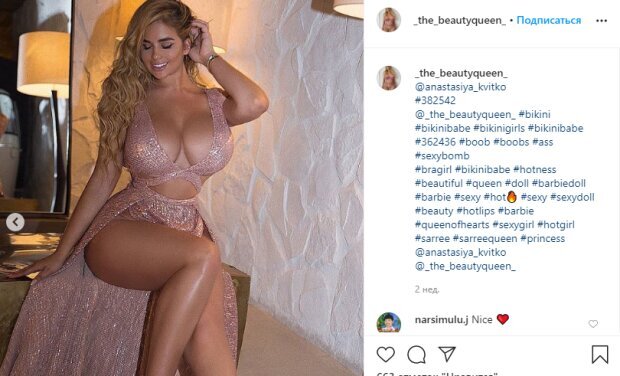 Знаменитая российская модель Анастасия Квитко, более известная как русская Кардашьян, похвасталась смелым нарядом, подчеркнувшим ее достоинства В этот раз молодая модель показала довольно дерзкий образ в розовом, едва ли скромном наряде. Девушка позировала без белья и не постеснялась показать лишнее. Похоже, жизнь звезды на карантине ничуть не изменилась после введения ограничений - новые кадры в Инстаграм продолжают появляться с завидной регулярностью. На фан-аккаунтах также можно заметить целые серии стильных и новых фото Девушка предстала в розовом платье, с невероятно глубоким декольте и высокими вырезами на бедрах. Благодаря смелым вырезам в платье отчетливо видно, что Анастасия появилась перед объективом без белья и ничуть этого не стесняется. Также молодая модель дополнила свой блестящий наряд аккуратными босоножками нюдового оттенка на каблуке. Волосы звезда аккуратно уложила, а на лицо нанесла легкий макияж с акцентом на пухлые щеки. Фанаты
