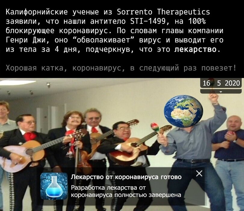 Иностранный ресурс на котором это всё подтверждается! - https://techcrunch.com/2020/05/15/sorrento-finds-a-coronavirus-antibody-that-blocks-viral-infection-100-in-preclinical-lab-experiments/