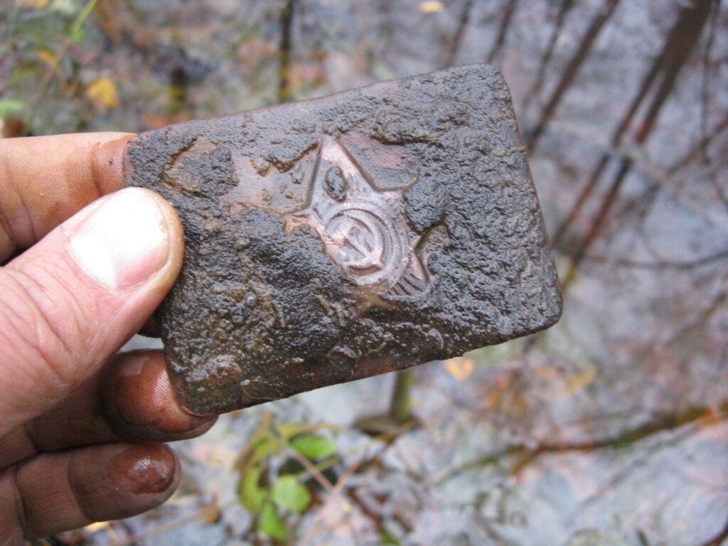 В воде у берега, в маленьком лесном озере очень бодро зазвонило цветниной. Конечно была вероятность, что это какой-то мусор, но я не поленился проверить и был несколько удивлен. Из прибрежного ила на свет была извлечена пряжка со звездой. Пряга как пряга, годов 60-70 х., да еще сломана! Но рядом еще сигнал, явно, что-то крупное. Может какой хлам с старого авто? Но надо не лениться а проверить... и вот на свет божий извлекается, длинный предмет покрытый колоссальным слоем ржавчины. Ударив предмет о дерево и отбив часть ржавчины, я понимаю, что это ствол! Ищу дальше и действительно не зря, рядом еще сигнал! На этот раз продолговатый предмет но покороче. Больше сигналов у берега не обнаружилось и я стал определять что же собственно нашел. Длинный ствол оказался остовом винтовки СВТ, а вот маленький удивил, это был когда-то пистолет-пулемет ППД, вещь редкая и ценная, но конечно в таком сохране ее ценность сомнительна. Ясно что на дне озера может быть еще много чего. Решил подождать лета