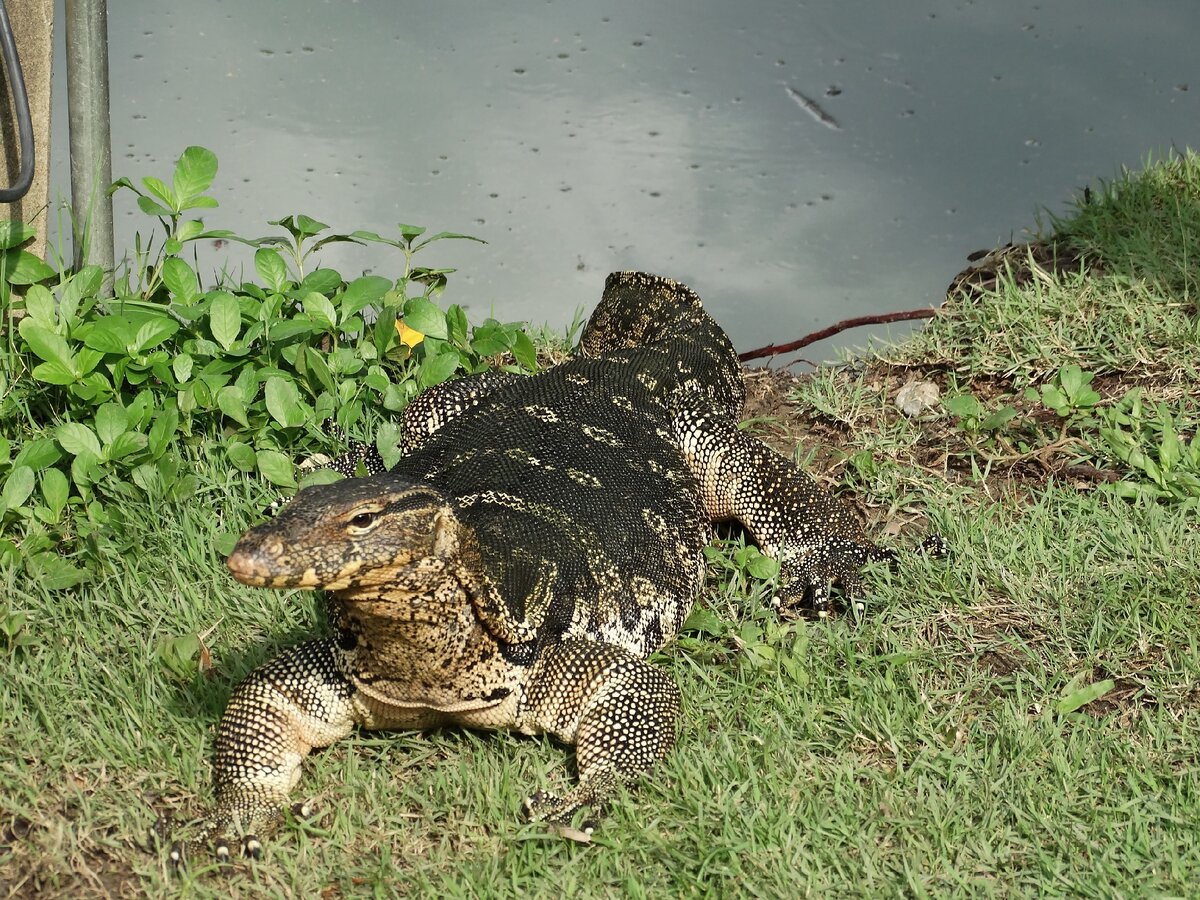 Парк Люмпини - зеленый оазис среди небоскребов в самом сердце Бангкока. Это самый необычный, спортивный и популярный парк города среди остальных. Конечно же, из-за главной его "достопримечательности" - варанов. Вараны в парке живут давно, они здесь повсюду: в озере, на газонах, на тротуарах. Порой и не поймешь: то ли вараны среди людей, то ли люди среди варанов. Длина взрослой особи достигает 1,5-2 метров. Рептилии являются "визитной карточкой" парка. Многие туристы приезжают в парк специально из-за них. И, действительно, это настолько необычно и непривычно для нас - ходить по одной дороге вместе с вараном. Вараны привыкли к людям: туристы часто их подкармливают хлебом. Хотя по природе своей эти большие ящерицы питаются насекомыми, рыбой, мелкими рептилиями, черепахами и даже падалью. С черепахами, которые могут в одночасье стать их добычей, вараны живут по соседству в одном озере. При мне ни одна черепаха не пострадала. Вараны в парке живут своей жизнью. Хотя при приближении человека