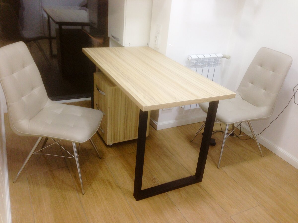 Этот стол делал буквально на коленке, когда у меня еще не было сварочного стола :). Нарезал из профильной трубы 50х30 4 заготовки по 750 мм, 4 заготовки по 500 мм, и одну заготовку 970 мм, такой раскрой был точно на 1 профильную трубу длинной 6 м без остатка, размер подстолья получился 750х560х1070 мм. Затем приложив угольник и магниты, собрал подстолье на прихватках, убедившись что геометрия правильная, и при необходимости подправив её, обварил все стыки электродом 2,5 мм, ну а затем как обычно зачистил швы и покрасил подстолье черной матовой краской. Получились вот такие очень простые офисные столы в стиле лофт :). Конечно же такие вещи проще всего было варить в упор на сварочном столе, но как выяснилось, даже не имея особого оборудования всё равно можно сварить ортогонально правильную геометрию :) , главное не торопиться и сначала собрать всё на прихватках :).
