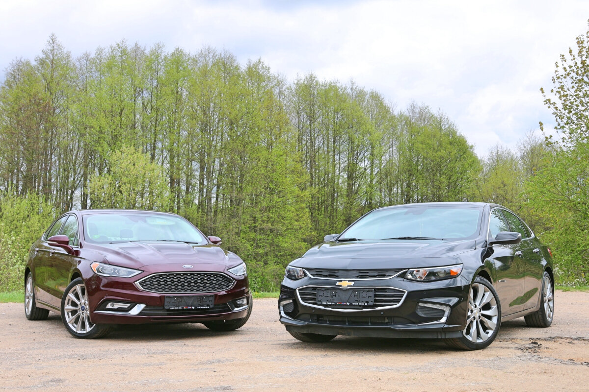 Итак, в бой. Fusion и Malibu у нас не обычные, а самые-самые "навороченные" в плане комплектаций: Fusion - в версии Platinum Titanium, причем после второго рестайлинга, а Malibu - "максимальный" Premier. Моторы самые мощные двухлитровые турбированные, причем Fusion полноприводный, у Chevrolet же привод безальтернативный передний. И каковы они в "топе"?