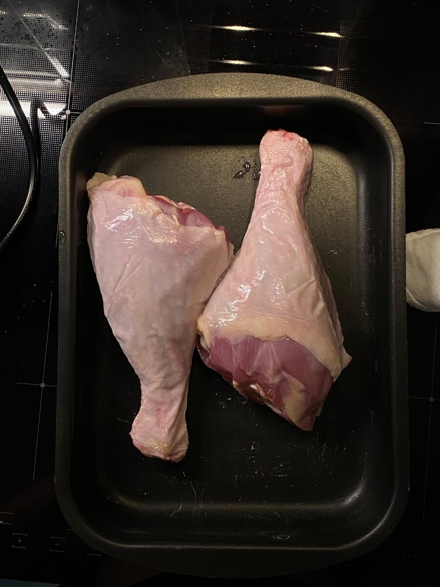 1. Берем голень индейки, выкладываем на противень.
