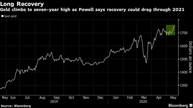 Золото выросло до самого высокого уровня за более чем семь лет после того, как Федеральная резервная система заявила, что акции и цены на активы могут сильно пострадать от пандемии коронавируса, и предупредила, что процесс восстановления экономики может затянуться до конца следующего года. , Коммерческая недвижимость может оказаться одной из наиболее пострадавших отраслей в случае углубления кризиса в области здравоохранения, говорится в отчете центрального банка США, который публикуется дважды в год. Отдельно председатель Джером Пауэлл заявил в интервью CBS, что полное восстановление экономики США может затянуться до 2021 года и зависит от доставки вакцины. В этом году слитки выросли на 16%, так как распространение вируса сдерживало экономический рост, взволновало рынки и побудило правительства и центральные банки использовать огромное количество стимулов. Дальнейшее подкрепление аргумента в пользу металла было недавним спекуляцией, что интерес США может стать отрицательным, в то вр