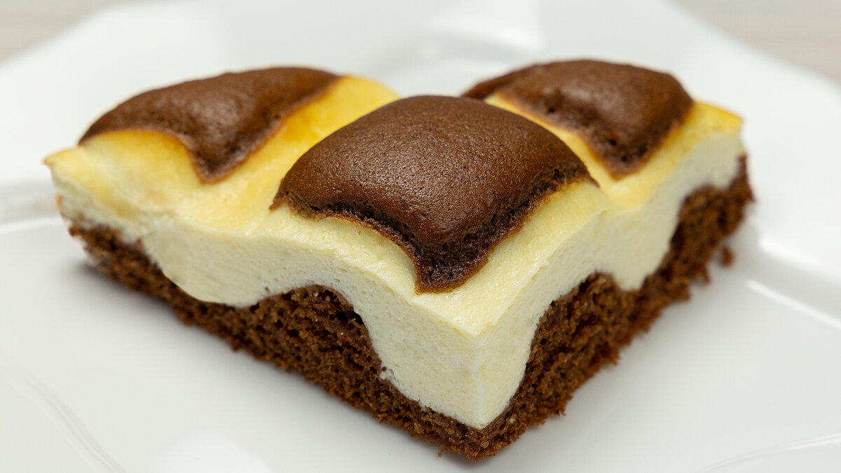 7. Перекладываем творожную начинку в кондитерский мешок. На шоколадном тесте рисуем сеточку. Выпекаем пирог в заранее разогретой духовке 25-30 минут при 180°
