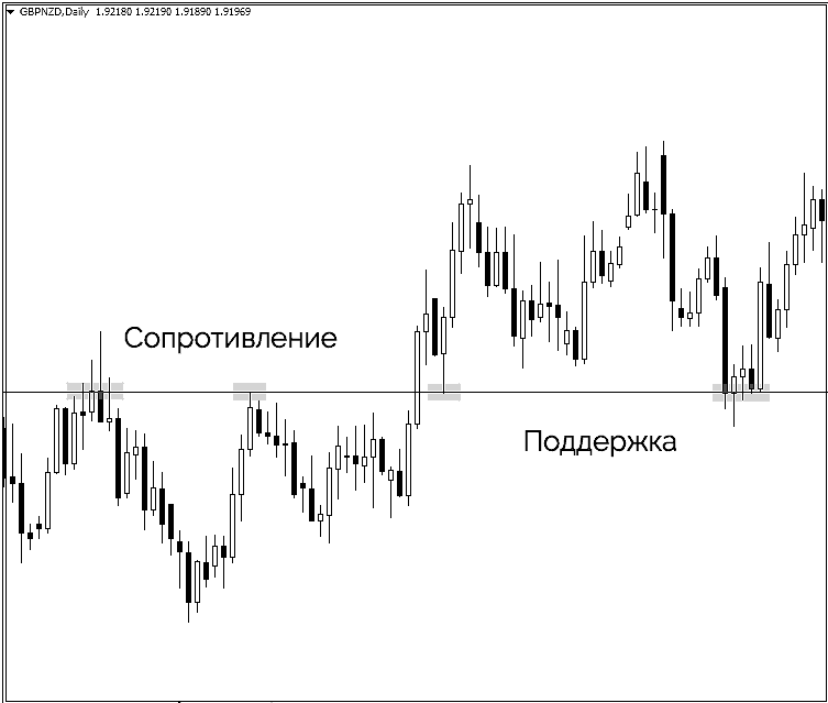 Уровни поддержки и сопротивления – это не линии на графике, а области или зоны. Не нужно стараться их рисовать точно по теням или телам свечей.