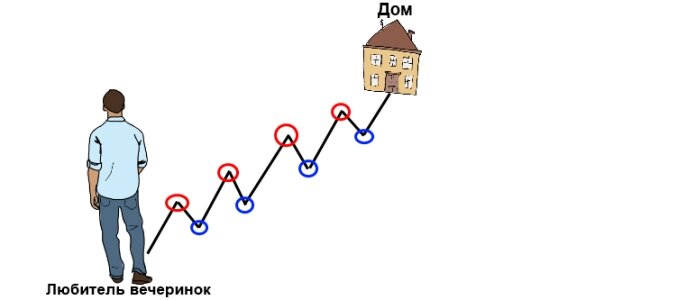 Ведь, возвращаясь к примеру с нашим любителем вечеринок, вероятность того, что он в таком состоянии пойдёт обратно, очень мала.