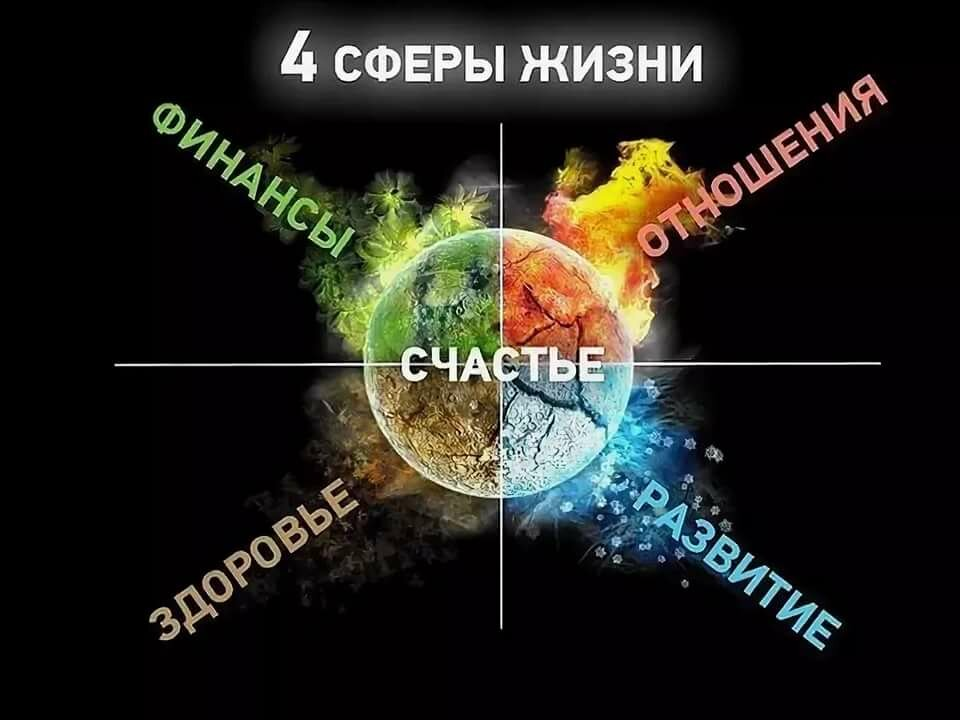 Каждый из нас стремится чувствовать себя счастливым и успешным. И это возможно лишь в том случае: если мы развиваемся гармонично, охватывая своим внимание 4 главные сферы жизни. Принято следующее деление жизни общества. 1. Экономическая 2. Политическая 3. Социальная 4. Духовная И каждый из нас окружён событиями и идеями этих сфер. Из них состоит государство и мировая обстановка в целом. Для достижения баланса человеку очень важно уделять достаточно времени своим основным потребностям. Возникают обоснованно вопросы: Как же применить это в своей жизни? Как проявляется в моем случае политическая сфера, что делать с ней? И другие. Я попробую ответить на них. Мы немного поменяем термины, для удобства анализа в применении к отдельно взятой личности, а не всего общества в целом: Итак, 4 сферы в нашей жизни: 👝👔💅💎 1. Материальное благополучие: Финансы, дом, питание, здоровье, отдых. То есть наше тело и все удобства для него. 👨👩👦👦 2. Отношения и контакты: Это социальное окружение в