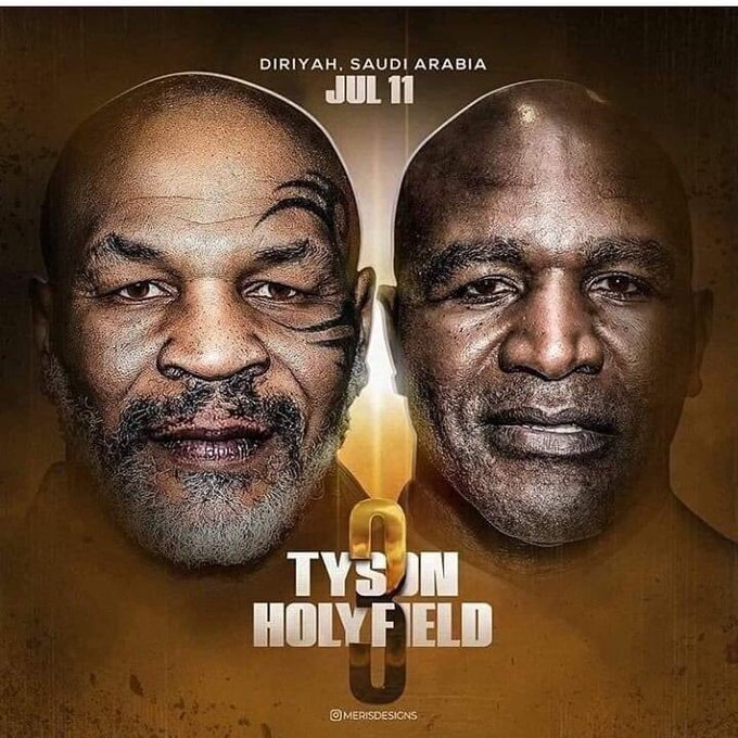 В «Твиттере» появилось изображение афиши легендарных боксёров-тяжеловесов Майка Тайсона и Эвандера Холифилда. Предполагается, что спортсмены могут сразиться в Саудовской Аравии 11 июля. Напомним, ранее 53-летний Тайсон заявил о желании вернуться на ринг ради участия в выставочных поединках, после чего Холифилд также сообщил, что хочет вернуться.