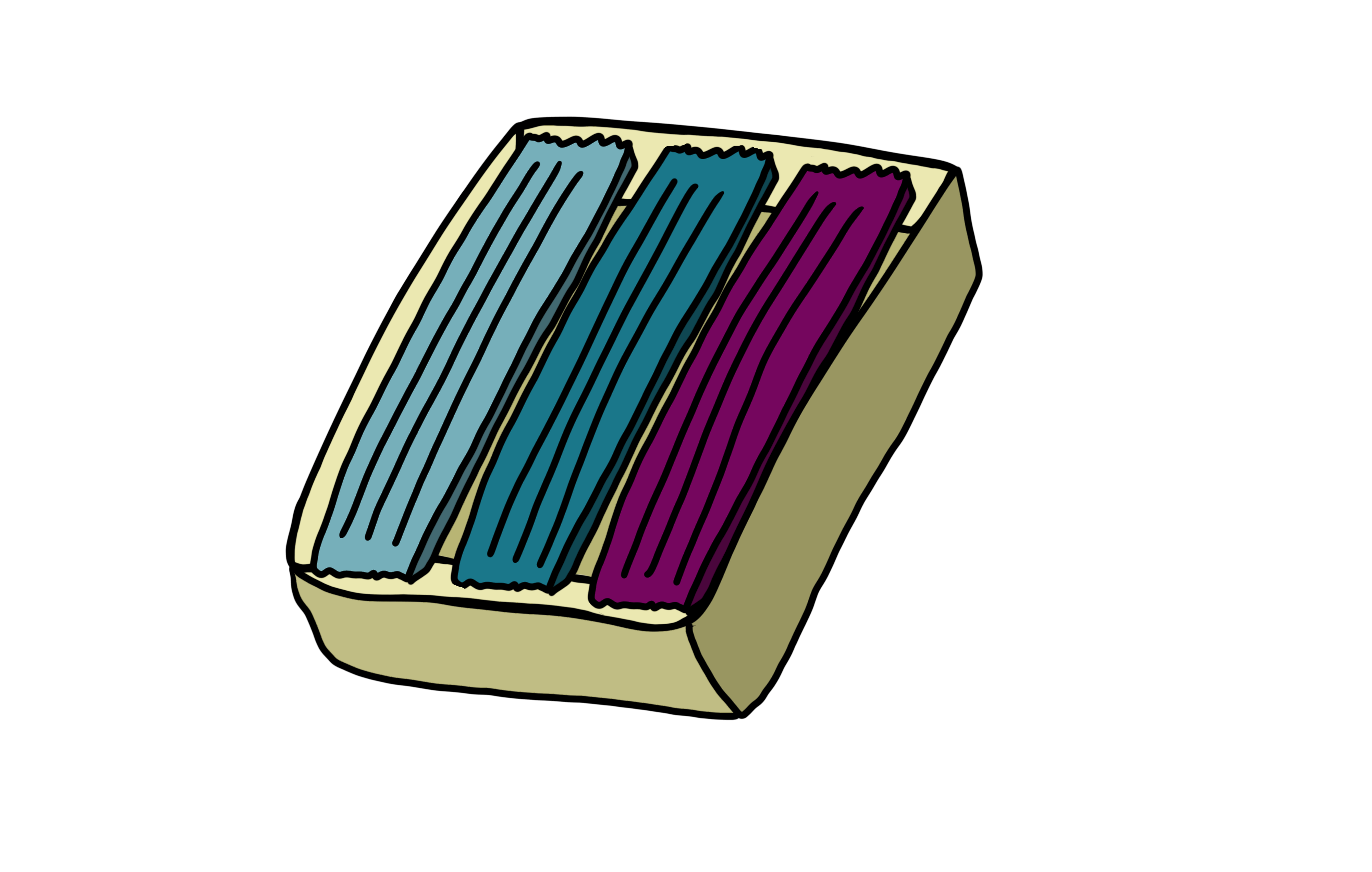 Возьмите лист бумаги, нарисуйте на нем любой сюжет (либо воспользуйтесь готовыми наборами для творчества, например, http://go.ast.ru/a0001wd или http://go.ast.ru/a0001we) и попробуйте раскрасить его при помощи пластилиновых брусочков. Просто нанесите каждый цвет тонким слоем поверх бумаги, равномерно размазывая его по поверхности. Как и с красками, вы сможете смешивать цвета и получать интересные оттенки. Для этого отщепните небольшие кусочки от 2 или 3 брусочков и скатайте в единый шарик. Пластилин поменяет цвет или вы сможете получить интересные узоры!
