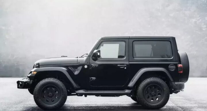 Этот двухдверный Wrangler имеет полностью черный оттенок без каких-либо оттенков хрома или других оттенков на корпусе. Спереди круглые светодиодные фары сохраняются, но оригинальная решетка радиатора заменяется на эксклюзивную горизонтальную. Это не имеет никакого значка вообще. Надпись «STERLING» наклеена на край капюшона.